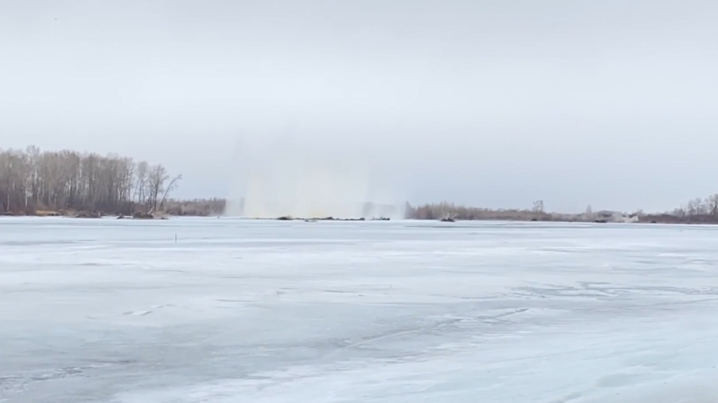 Полтонны взрывчатки раскрошили лёд на реке Абакан у Белого Яра