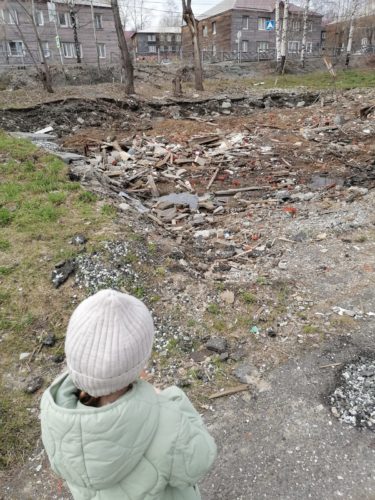 Я понимаю, что дома сносят и будут дальше сносить, но надо как-то закрывать эту территорию, приводить её в порядок. Это же ещё страшнее, чем было. А то мы вроде как бы к чему-то стремимся, сносим старые дома, а после себя вот такое оставляем. Вот и получается, что жители Первомайки живут в трущобах.