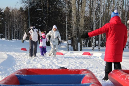На аллее спорта праздник начался с семейного зимнего забега в зачет Спартакиады «Спортивная семья КМО». В эстафете приняло участие 12 семейных команд в составе трех человек: папа, мама и ребенок.