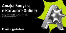 Onlíner и Альфа Банк запускают приятную новинку для тех, кто заказывает товары с доставкой Príme: теперь за каждую такую покупку, оплаченную картой Альфа Банка в Пакете решений*, вы будете получать 2% бонусами в программе лояльности «Альфа Бонус».