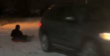 Белорус прокатил человека на тюбинге, привязанном к машине, и получил штраф (видео)
