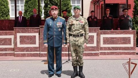 Директор Федеральной службы войск национальной гвардии — главнокомандующий войсками национальной гвардии Российской Федерации Герой России Виктор Золотов вручил личный штандарт командующему Северо-Кавказским ордена Жукова округом Росгвардии Владимиру Спиридонову.