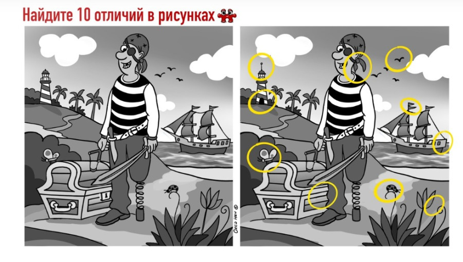 Память о морских разбойниках живет до сих пор, вдохновляя писателей, режиссеров и художников по всему миру. А также создателей головоломок! Знаем, после такого ликбеза очень хочется пересмотреть франшизу про карибских пиратов... Но сначала найдите 10 отличий между двумя пиратами на картинках.